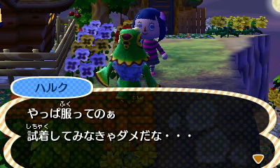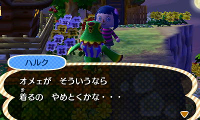 (ーー;) えーっ。似合わなーーい! じぇい村長は一緒に歩きたくない!(-"-;)