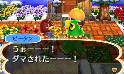 じぇい村長が埋めた、落とし穴のタネが熟した穴に落ちたピータン。