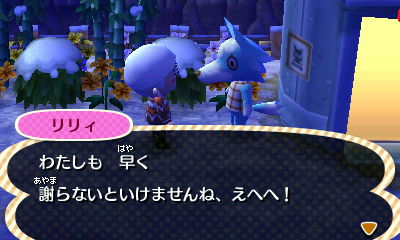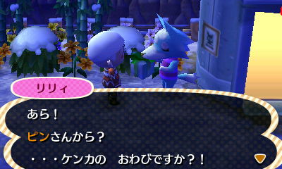ピン君が浮かれてた。向こうに浮かれたリリィさんもいたから…仲直りしたらしい。