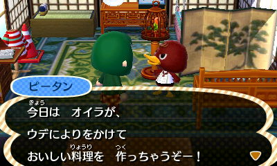 挨拶もそこそこに…ピータンに物を売りつけられる、える。
